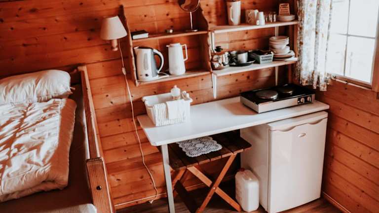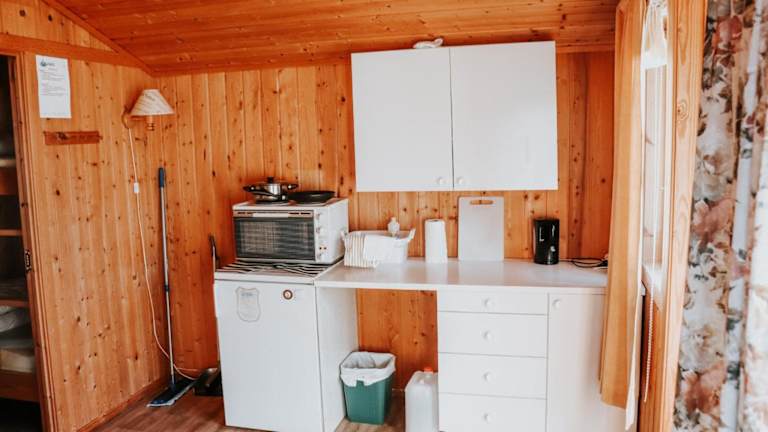 Die Cottages sind mit einer kleinen Küchenzeile ausgestattet, die einen Kühlschrank umfasst. Bettwäsche und Handtücher sind nicht im Preis inbegriffen und können nach Anfrage ausgeliehen werden.