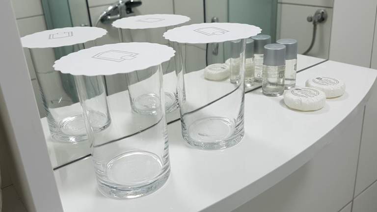 In der Unterkunft besteht die Möglichkeit zur Essenslieferung. Zudem gibt es Abstandsregeln in den Essbereichen, um die Sicherheit der Gäste zu gewährleisten.