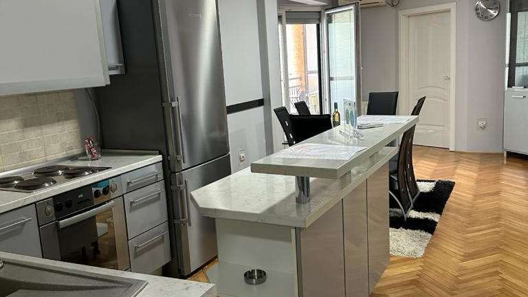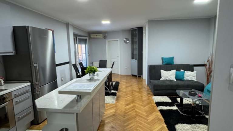 Das Apartment im M&G centar grada ist modern und komfortabel eingerichtet. Mit einem Schlafzimmer, einem Wohnzimmer, einem Flachbild-TV und einer voll ausgestatteten Küche mit Kühlschrank und Geschirrspüler bietet es alles, was Sie für einen angenehmen Aufenthalt benötigen. Das Badezimmer verfügt über eine Badewanne und Handtücher und Bettwäsche werden gestellt. Genießen Sie den Komfort und die Annehmlichkeiten dieses Apartments.