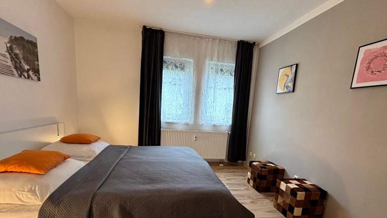 Das M&M Serviced Apartment bietet Ihnen ein gemütliches und komfortables Zuhause auf Zeit. Das Apartment verfügt über zwei Schlafzimmer, ein Wohnzimmer und eine voll ausgestattete Küche. Die Küche ist mit einem Kühlschrank und einer Kaffeemaschine ausgestattet, so dass Sie sich jederzeit eine Mahlzeit zubereiten können. Das Badezimmer verfügt über eine Dusche und kostenlose Pflegeprodukte. Handtücher und Bettwäsche werden gestellt, so dass Sie sich um nichts kümmern müssen.