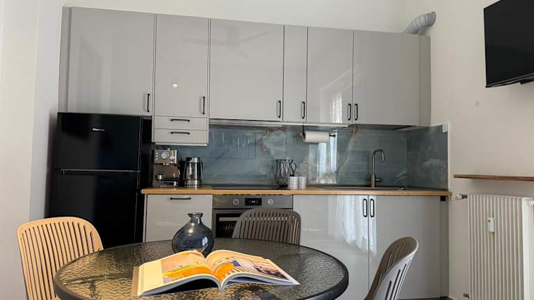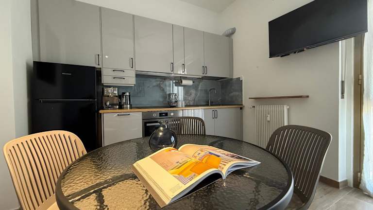 Die Ferienwohnung verfügt über einen Balkon mit Stadtblick, ein Schlafzimmer, ein Wohnzimmer, einen Flachbild-TV mit Kabelanschluss und eine gut ausgestattete Küche. Zudem stehen ein Badezimmer mit Bidet und Dusche zur Verfügung. Handtücher sowie Bettwäsche werden bereitgestellt.