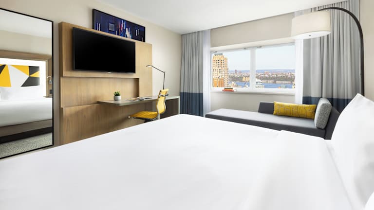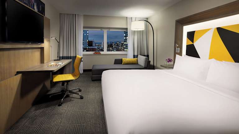 Das M Social Hotel Times Square New York verfügt über 480 charmante und elegante Zimmer, die mit modernen Annehmlichkeiten wie einem Flachbild-Kabel-TV, einem Schreibtisch und einem Safe ausgestattet sind. Ein Kaffeekocher steht zur Verfügung, um Ihnen einen guten Start in den Tag zu ermöglichen. Das Hotel bietet auch einen Bankautomaten, ein Business-Center und einen Souvenirshop. WLAN ist im gesamten Hotel kostenfrei verfügbar.