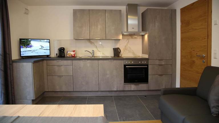 Die M4 Appartements bieten geräumige und komfortable Unterkünfte mit einer Reihe von Annehmlichkeiten. Jedes Apartment verfügt über einen Balkon mit herrlichem Bergblick, einen gemütlichen Sitzbereich und einen Flachbild-TV. Die voll ausgestattete Küche bietet alles, was Sie zum Zubereiten Ihrer eigenen Mahlzeiten benötigen, einschließlich eines Kühlschranks, eines Geschirrspülers, eines Backofens, einer Mikrowelle, eines Kochfelds, einer Kaffeemaschine und eines Wasserkochers. Das private Badezimmer ist mit einer Dusche und kostenlosen Pflegeprodukten ausgestattet.