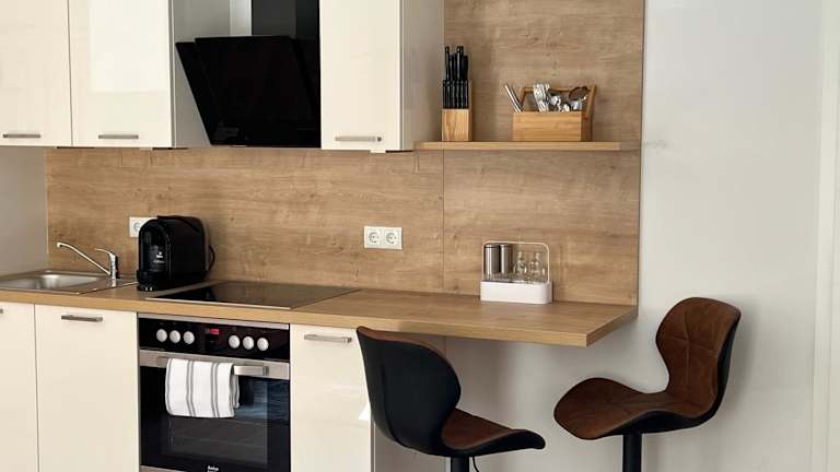 Die Ferienwohnung verfügt über 1 Schlafzimmer und 1 Badezimmer. Zu den Annehmlichkeiten zählen Bettwäsche, Handtücher, ein Flachbild-TV und ein Essbereich. Die voll ausgestattete Küche ermöglicht das Zubereiten eigener Mahlzeiten. Eine Terrasse mit Stadtblick rundet das Angebot ab.