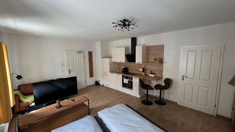 Die M96 Ferienwohnung bietet eine komfortable Unterkunft mit verschiedenen Annehmlichkeiten für einen angenehmen Aufenthalt. Die umfassende Ausstattung beinhaltet kostenloses WLAN in der gesamten Unterkunft, um bequem online zu bleiben.
