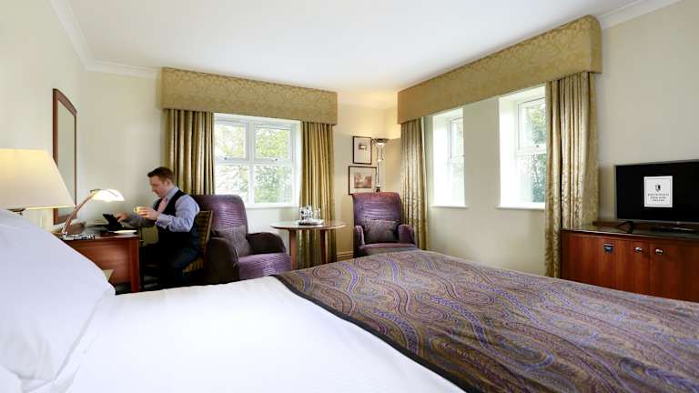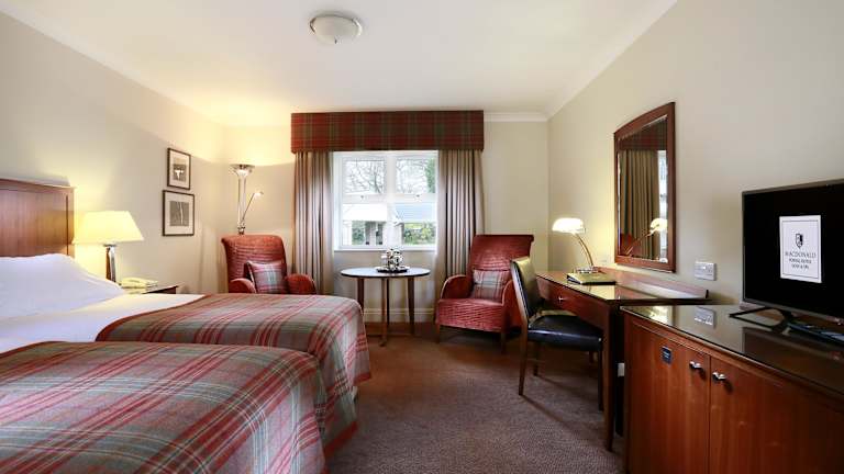 Die Zimmer im Macdonald Portal Hotel Golf & Spa sind geräumig und bieten eine moderne und komfortable Einrichtung. Die Badezimmer verfügen über eine Badewanne und eine ebenerdige Dusche. Zur Ausstattung gehören auch Flachbild-TVs und kostenfreies WLAN. Die Gäste können sich in den gemütlichen Zimmern zurückziehen und ihren Aufenthalt in vollen Zügen genießen.