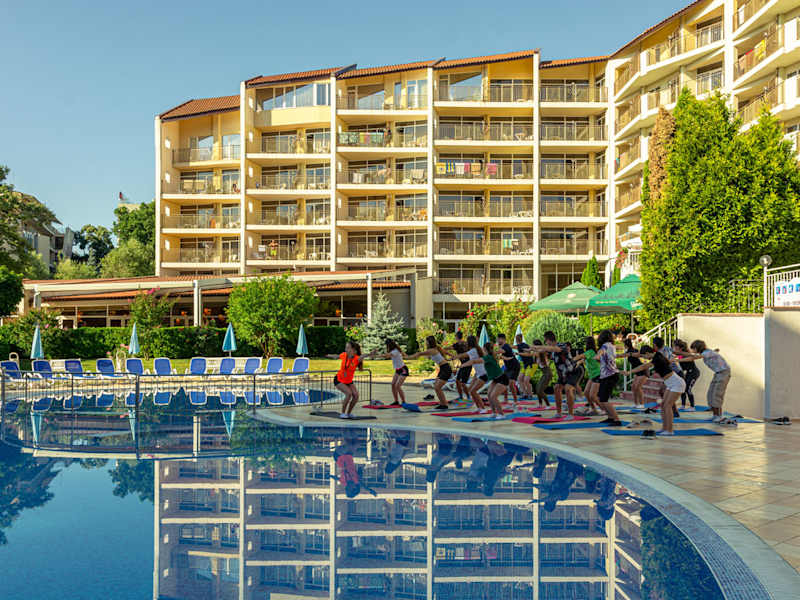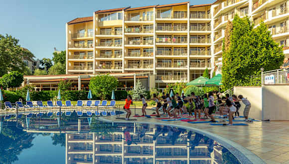 Das Madara Park Hotel ist ein All-Inclusive-Hotel in Golden Sands an der nördlichen bulgarischen Schwarzmeerküste. Sie sind nur einen kurzen Spaziergang vom Strand mit Blauer Flagge entfernt, der für seinen sauberen Sand berühmt ist. Entlang des Strandes finden Sie auch Geschäfte, Restaurants, Bars und Unterhaltungsmöglichkeiten. Das Madara Park Hotel ist bei Familien mit kleinen Kindern und Paaren beliebt. Mit einem Außenpool und einer Reihe von Aktivitäten haben Sie während Ihres Aufenthalts viel zu tun. Freuen Sie sich auf sportliche Aktivitäten wie Tischtennis. Wer es weniger anstrengend mag, verbringt einige Zeit im hoteleigenen Spa, das neben einer Sauna und einem Hydromassage-Whirlpool auch verschiedene Behandlungen und Angebote bietet. Abends speisen Sie im Buffetrestaurant des Madara Park Hotels, das internationale und mediterrane Küche serviert, gefolgt von Getränken an der Bar. Es gibt auch Abendunterhaltung mit unseren Animateuren. Wenn Sie etwas von Bulgariens Nachtleben erleben möchten, gibt es Bars und Nachtclubs entlang der Küste.