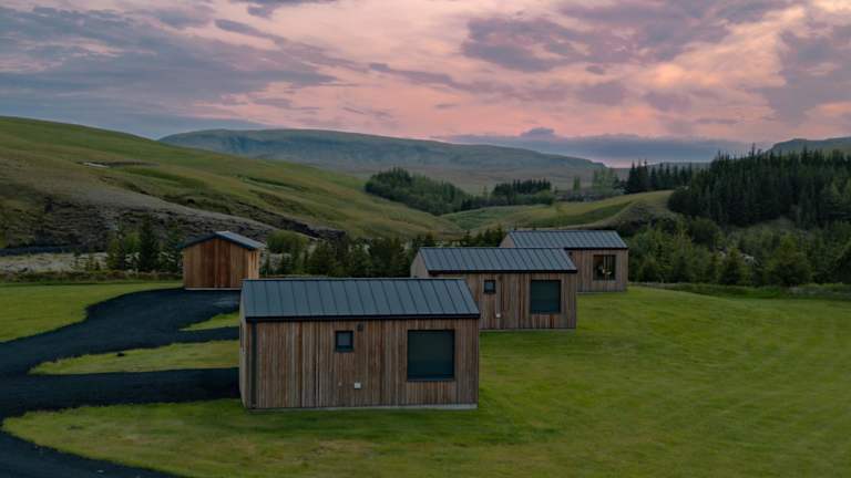 Die Unterkunft befindet sich in Kirkjubæjarklaustur, 17 km von Fagrifoss entfernt und bietet eine idyllische Aussicht auf die umliegenden Berge.