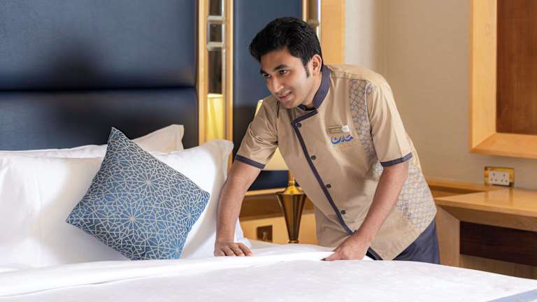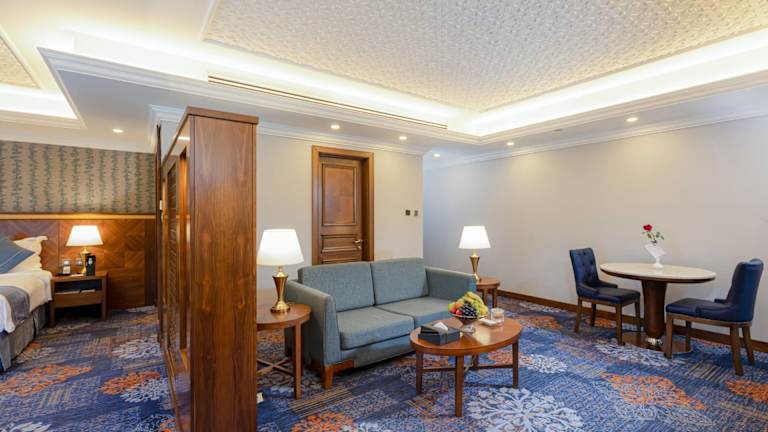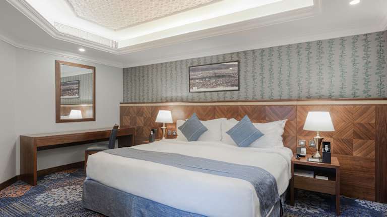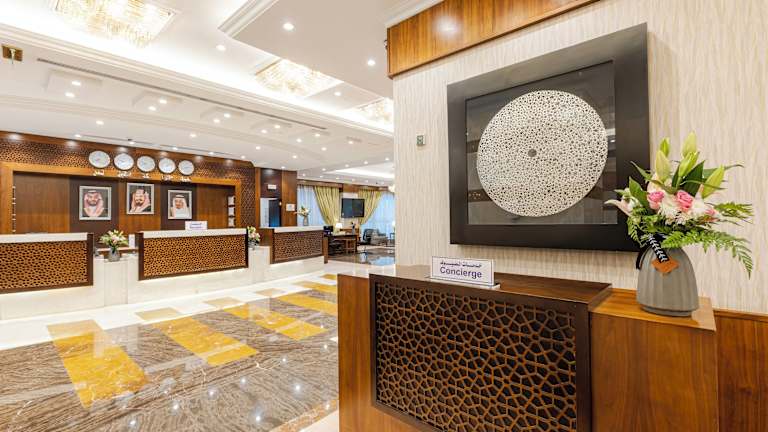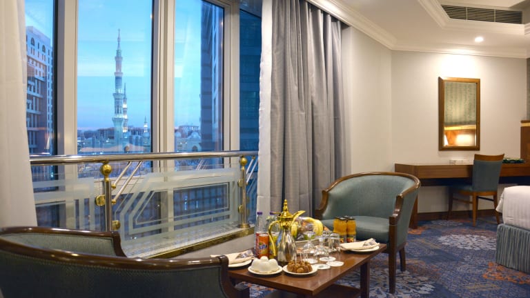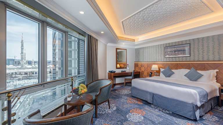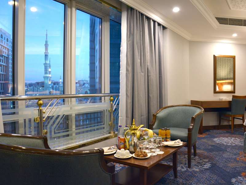 Das MADEN Hotel liegt 100 m von der Moschee Al Haram entfernt, in einer zentralen Lage mit guter Anbindung zum öffentlichen Transport. Der Flughafen Prinz Mohamed Bin Abdul Aziz ist nach 25 Fahrminuten erreichbar und der öffentliche Bahnhof ist in etwa 10 Minuten mit dem Auto zu erreichen.