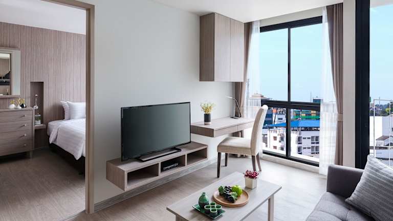 Die Zimmer im Madera Residence Sriracha sind geräumig und verfügen über einen Balkon, einen gemütlichen Sitzbereich und einen Flachbild-Sat-TV. Eine voll ausgestattete Küche mit Kühlschrank, Mikrowelle, Kochfeld und Wasserkocher steht Ihnen ebenfalls zur Verfügung. Das private Badezimmer ist mit einer Dusche und kostenlosen Pflegeprodukten ausgestattet. Eine Minibar ist ebenfalls vorhanden.