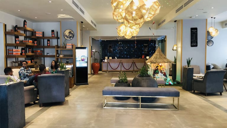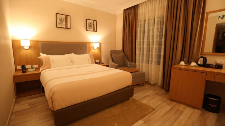 Das Mado Hotel ist die perfekte Wahl für einen Aufenthalt in Addis Abeba. Mit seiner erstklassigen Lage im Stadtteil Bole, in der Nähe von Einkaufszentren und Geschäftszentren, bietet das Hotel seinen Gästen Komfort und Bequemlichkeit. Genießen Sie den erstklassigen Service, das hoteleigene Restaurant und den kostenlosen WLAN-Zugang. Die klimatisierten Zimmer sind modern eingerichtet und verfügen über alle Annehmlichkeiten, die Sie für einen angenehmen Aufenthalt benötigen. Beginnen Sie Ihren Tag mit einem leckeren Frühstücksbuffet und erkunden Sie dann die Sehenswürdigkeiten, die Addis Abeba zu bieten hat.