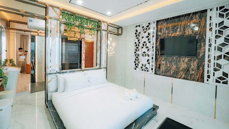 Jedes Zimmer in der Madusea Grand Villa ist mit einem Balkon ausgestattet und bietet Klimaanlage, Kleiderschrank, Terrasse mit Meerblick, eigenes Badezimmer, Flachbild-TV, Bettwäsche und Handtücher. Zusätzlich verfügen die Zimmer über einen Kühlschrank.