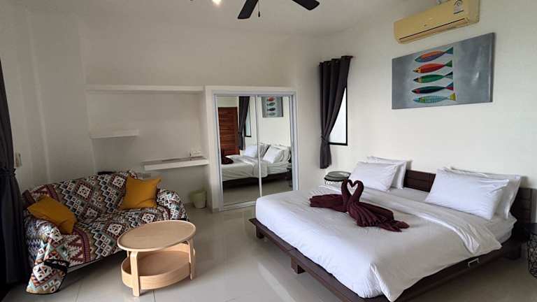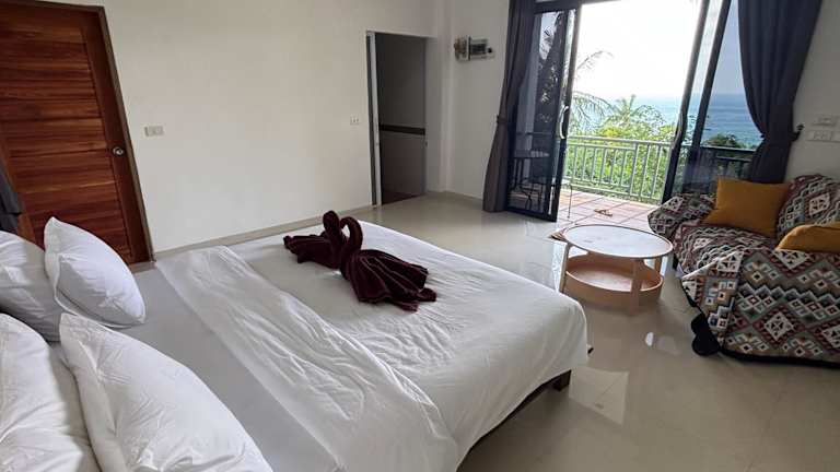 Die Villa Mae Haad Sunset 2 bietet einen Garten und ist klimatisiert. Sie ermöglicht den direkten Zugriff auf einen Balkon mit Gartenblick und umfasst ein Schlafzimmer und ein Badezimmer.