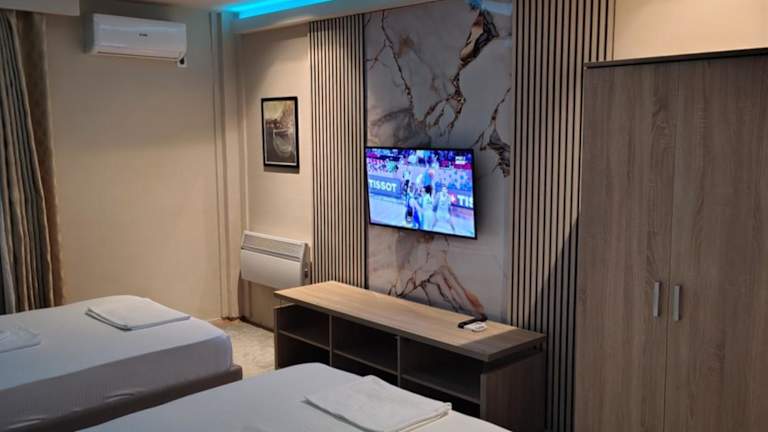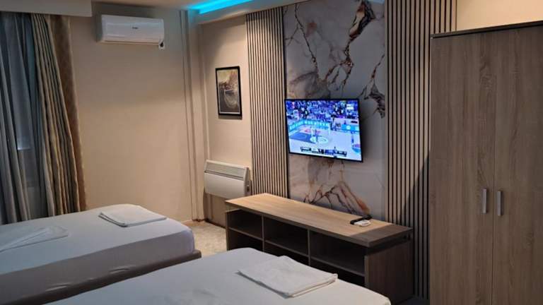 Das Apartment verfügt über ein gemütliches Schlafzimmer, in dem Sie nach einem ereignisreichen Tag entspannen können. Das Badezimmer ist modern und komfortabel ausgestattet. Der Flachbild-TV sorgt für Unterhaltung und der kostenfreie WLAN-Zugang ermöglicht es Ihnen, mit Ihren Lieben in Verbindung zu bleiben.