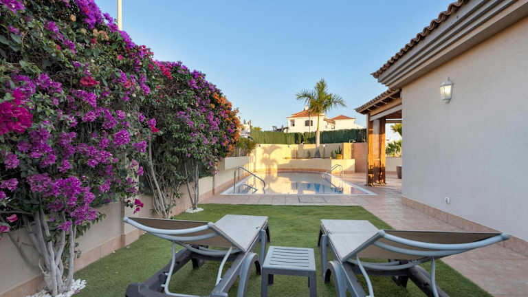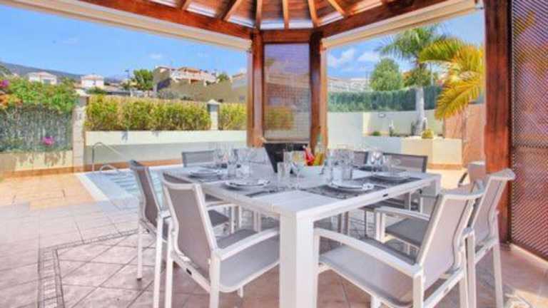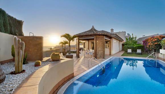 Verbringen Sie einen traumhaften Urlaub in der Magnifica Villa Happy Holidays con piscina en los Gigantes in Puerto de Santiago. Die Villa bietet Ihnen einen Außenpool, einen Garten und eine Terrasse mit atemberaubendem Stadtblick. Genießen Sie den Komfort der klimatisierten Villa mit 4 Schlafzimmern, einem geräumigen Wohnzimmer und einer voll ausgestatteten Küche. Handtücher und Bettwäsche werden gestellt, und Sie können Ihr Fahrzeug auf den Privatparkplätzen abstellen. Entdecken Sie die beliebten Strände La Arena, Puerto Santiago und Playa de Santiago, die in der Nähe der Villa liegen. Der Flughafen Teneriffa Süd ist nur 39 km entfernt.