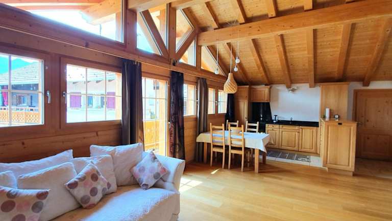 Das Chalet ist mit 2 Schlafzimmern und 1 Badezimmer ausgestattet. Zur Ausstattung gehören Bettwäsche und Handtücher, ein Flachbild-TV mit Satellitenkanälen, ein Essbereich sowie eine voll ausgestattete Küche. Zudem verfügt die Unterkunft über einen Balkon und eine Terrasse mit Bergblick.