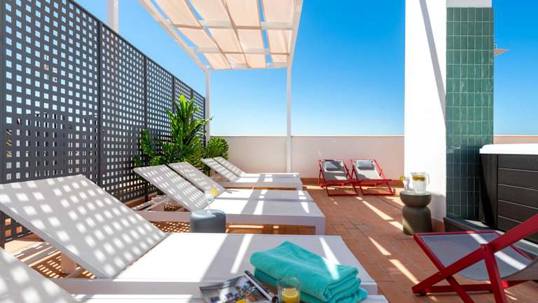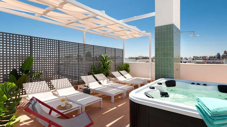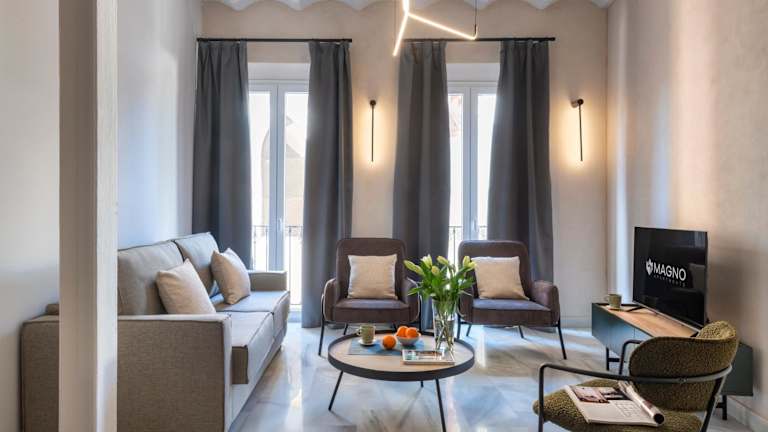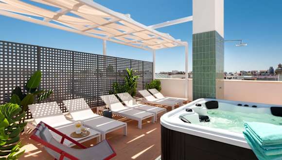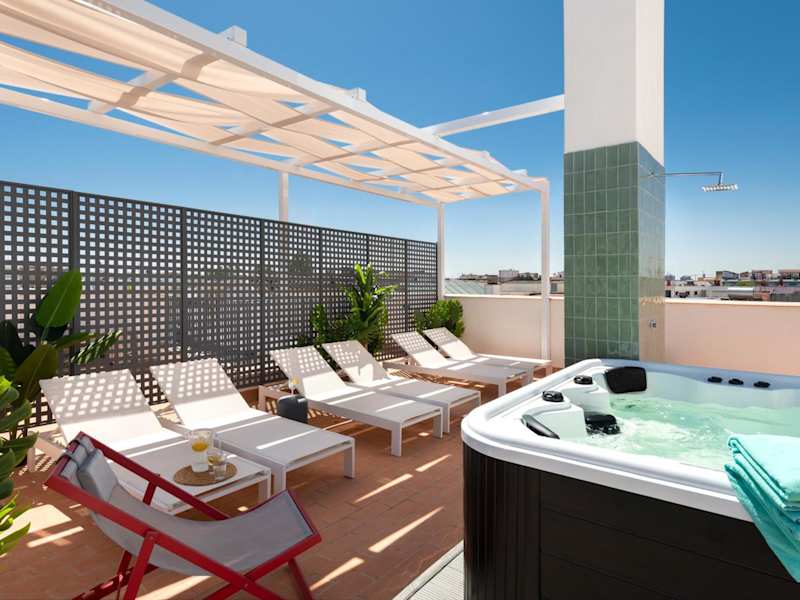 Magno Apartments San Gil - Shared Jacuzzi bietet Übernachtungsmöglichkeiten in einem komfortablen ambiente. Es besteht die Möglichkeit, einen Außenpool und eine Terrasse zu nutzen. WLAN ist in der gesamten Unterkunft kostenfrei verfügbar.