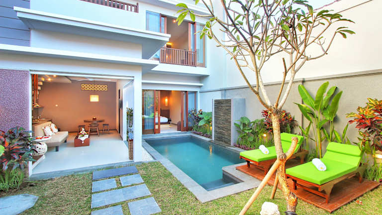 Das Maharaja Villas Seminyak CHSE Certified in Kerobokan bietet luxuriöse Unterkünfte mit eigenem Pool und Whirlpool. Die Unterkunft ist gut ausgestattet und verfügt über kostenfreies WLAN und Privatparkplätze. Genießen Sie den Komfort der modernen Einrichtung und entspannen Sie im Wellnesscenter. Die Bar und das Restaurant bieten eine Auswahl an Getränken und Speisen für jeden Geschmack. Erkunden Sie die Umgebung mit einem gemieteten Fahrrad und nutzen Sie den kostenfreien Shuttleservice nach Seminyak und Petitenget.