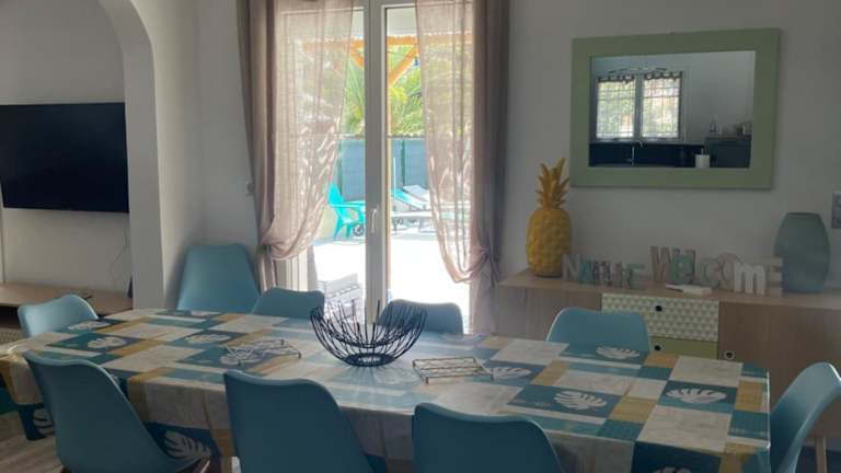 Das Maison 8-10 pers avec piscine aux portes de St Aygulf ist die perfekte Unterkunft in Fréjus für einen entspannten Urlaub. Mit einem saisonalen Außenpool, einem Garten und einer Terrasse können Sie die sonnigen Tage in vollen Zügen genießen. Das Ferienhaus bietet Platz für bis zu 10 Personen und verfügt über 4 Schlafzimmer, ein geräumiges Wohnzimmer und eine voll ausgestattete Küche. Die nahegelegenen Aktivitäten wie Wandern, Angeln und Radfahren lassen keine Langeweile aufkommen. Der Strand Galiote ist nur 2,9 km entfernt und der Bahnhof Saint-Raphaël Valescure erreichen Sie nach 9,3 km.