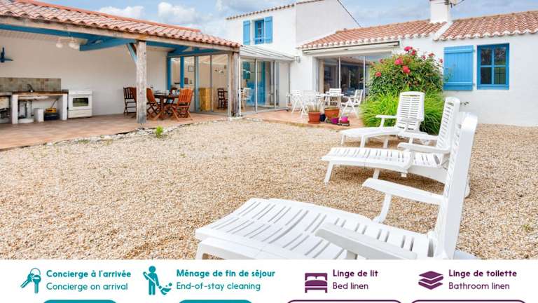 Die Unterkunft Maison avec terrasse - 900m plage des Sableaux bietet Übernachtungsmöglichkeiten in einem Ferienhaus mit einer großen Terrasse und kostenlosem WLAN. Das Haus verfügt über vier Schlafzimmer, zwei Badezimmer sowie einen Wohnbereich mit einem TV. Es sind Nichtraucherzimmer verfügbar, und das Haus ist für Haustiere auf Anfrage zugänglich.