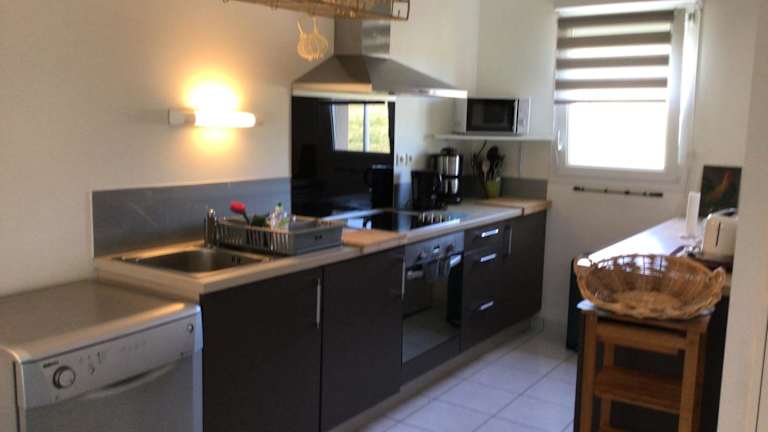 Das Ferienhaus umfasst ein Wohnzimmer mit Sitz- und Essbereich sowie eine komplett ausgestattete Küche mit Kühlschrank, Geschirrspüler und Ofen. Es bietet 2 Schlafzimmer und 2 Badezimmer, eines mit Dusche und das andere mit Badewanne. Handtücher und Bettwäsche können gegen Aufpreis zur Verfügung gestellt werden.