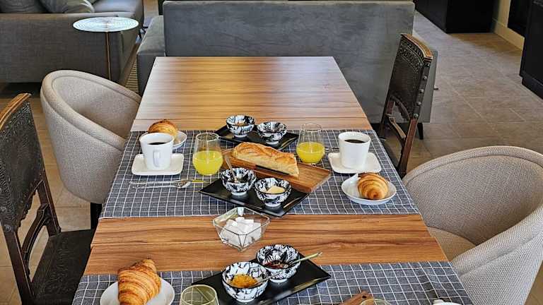 Die Unterkunft bietet ein Restaurant, das französische Küche serviert. Das Frühstück wird in Buffetform angeboten und umfasst vegetarische und halal-zubereitete Optionen. Auf Anfrage sind auch vegetarische Gerichte erhältlich.