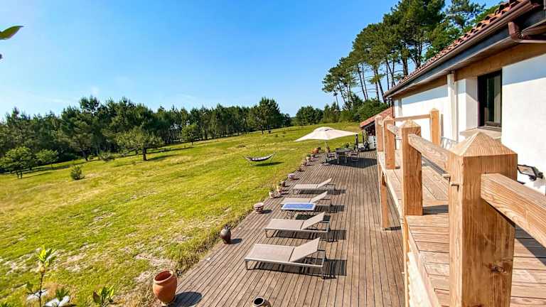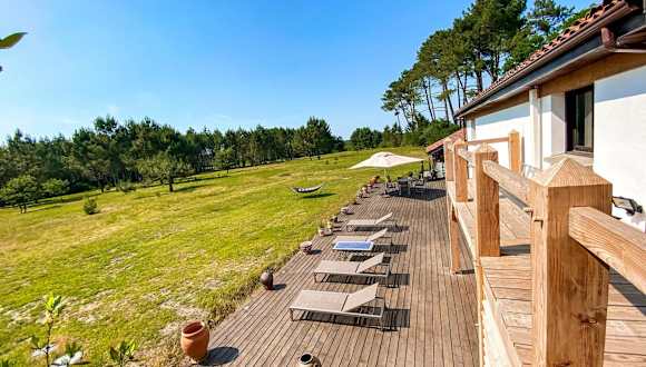 Die Unterkunft befindet sich in Mézos, 33 km vom Naturschutzgebiet Courant d'Huchet und 39 km vom Golfplatz Moliets entfernt. Der nächste Bahnhof ist 50 km entfernt in Dax. Der nächstgelegene Flughafen ist der Flughafen Biarritz, der 94 km von der Unterkunft entfernt ist.