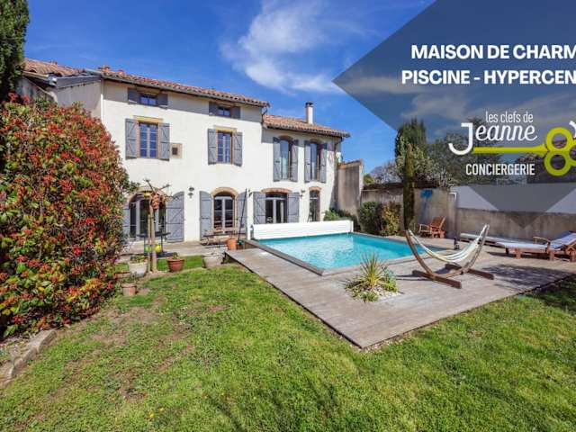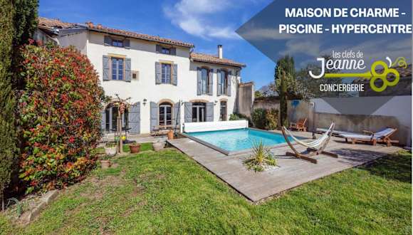 Das Maison de charme - Piscine - Hypercentre - 300m2 ist ein Ferienhaus mit 6 Schlafzimmern und einer großzügigen Fläche von 300 m². Die Unterkunft ist mit modernen Annehmlichkeiten ausgestattet und bietet einen Außenpool sowie eine Terrasse.