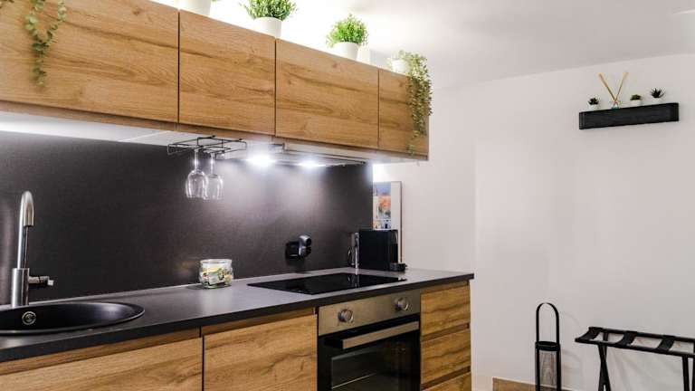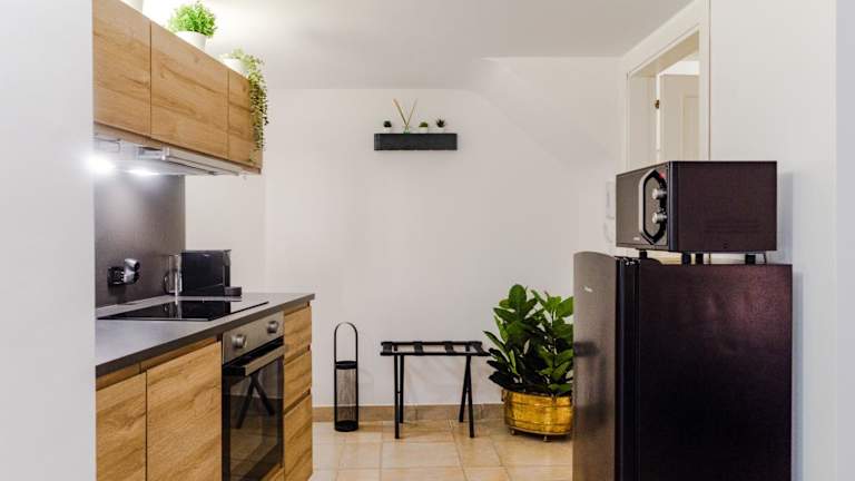 Die Ferienwohnung verfügt über ein Schlafzimmer, ein Wohnzimmer, eine voll ausgestattete Küche mit Kühlschrank und Kaffeemaschine sowie zwei Badezimmer mit Bidet und Dusche. Zu den Annehmlichkeiten gehören Klimaanlage, kostenloses WLAN sowie bereitgestellte Handtücher und Bettwäsche.