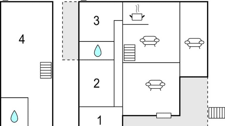 Das Ferienhaus verfügt über 4 Schlafzimmer, ein Wohnzimmer, eine voll ausgestattete Küche mit Kühlschrank und Kaffeemaschine sowie 2 Badezimmer, die mit einer Dusche und einem Whirlpool ausgestattet sind.