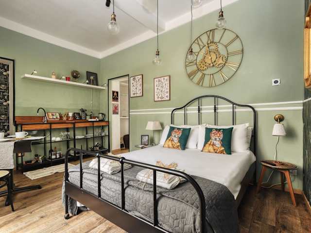 Die Ferienwohnung besteht aus einem klimatisierten Schlafzimmer und einem Badezimmer, das mit einem Bidet, einer Dusche und einem Haartrockner ausgestattet ist. Die Küchenzeile verfügt über einen Kühlschrank, eine Minibar, eine Herdplatte sowie einen Wasserkocher. Bettwäsche, Handtücher und Wäsche werden nach den Richtlinien der örtlichen Behörden gewaschen und die Unterkunft wird zwischen den Aufenthalten desinfiziert.
