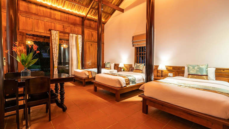 Die Zimmer im Maison Du VietNam Resort & Spa sind klimatisiert und bieten einen Sitzbereich, einen Flachbild-TV mit Satellitenkanälen, einen Safe sowie ein eigenes Badezimmer mit einem Bidet, kostenlosen Pflegeprodukten und einem Haartrockner. Viele Zimmer verfügen über einen Blick auf den Pool und sind mit einer Veranda oder einem Patio ausgestattet. Bettwäsche und Handtücher sind in sämtlichen Zimmern vorhanden.