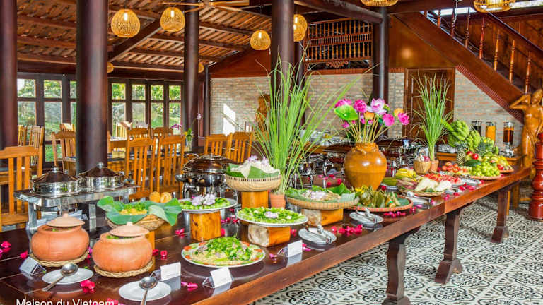Das Maison Du VietNam Resort & Spa bietet eine Vielzahl an Annehmlichkeiten, darunter kostenlose Fahrräder, einen Privatparkplatz, einen Außenpool und ein Fitnesscenter. Zur Ausstattung des Resorts gehören ein Restaurant, eine Gemeinschaftsküche, kostenloses WLAN sowie ein kostenloser Shuttle-Service. Des Weiteren stehen eine Terrasse, eine Bar und eine Gemeinschaftslounge zur Verfügung.