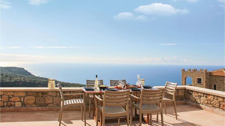 Die Unterkunft befindet sich in Kardhamili, rund 2,1 km vom Strand Paralia Kalamitsi entfernt. Die Strände Foneas und Delfinia sind 2,2 km bzw. 2,7 km entfernt. Der nächste Flughafen ist der Internationale Flughafen Kalamata, der sich 51 km entfernt befindet.