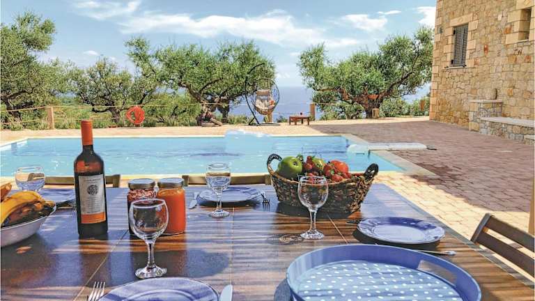 Maison Elia With Private Pool bietet Übernachtungsmöglichkeiten mit einem privaten Pool, Balkon und Meerblick. Die Unterkunft umfasst eine Terrasse und stellt kostenlos einen Privatparkplatz zur Verfügung.