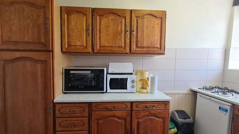 In der Unterkunft befindet sich eine gut ausgestattete Küche mit einem Kühlschrank und einer Mikrowelle, die die Selbstverpflegung ermöglicht.