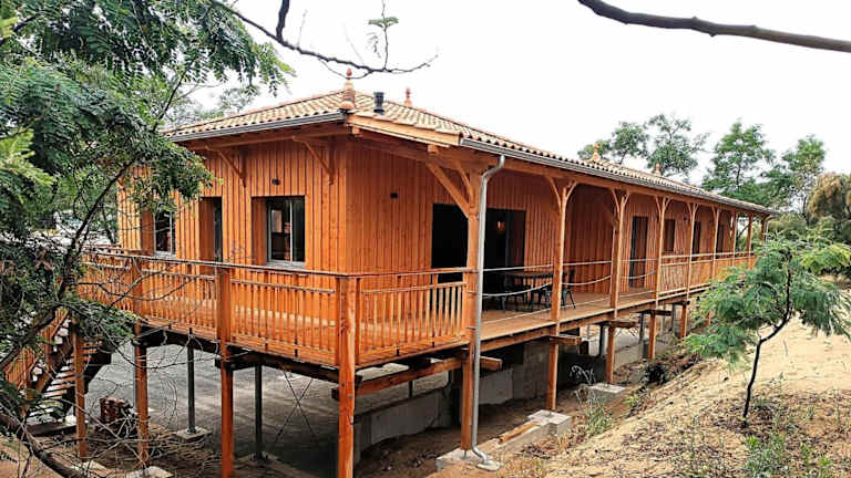 Maison en bois sur pilotis- 4218 ist eine Unterkunft, die direkt am Strand gelegen ist und Zugang zu einer Terrasse sowie einem kostenlosen Privatparkplatz bietet.