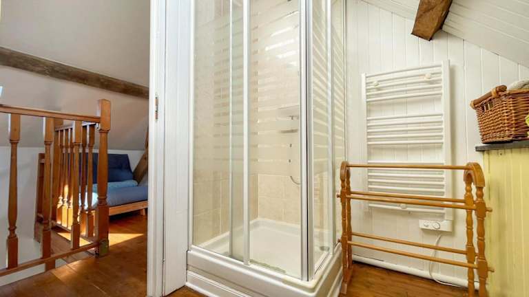 Das Ferienhaus verfügt über ein Schlafzimmer, ein Badezimmer mit Dusche sowie eine gut ausgestattete Küche, die mit einem Kühlschrank und einem Geschirrspüler ausgestattet ist. Zudem ist ein TV vorhanden.