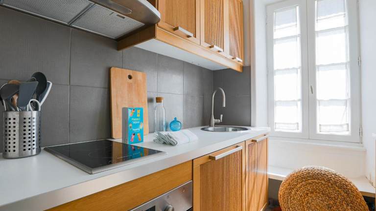 Die Unterkunft bietet eine voll ausgestattete Küche, die mit einem Kühlschrank, Geschirrspüler, Waschmaschine, Ofen und Mikrowelle ausgestattet ist. Es sind keine weiteren Verpflegungsmöglichkeiten vorhanden.
