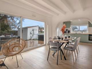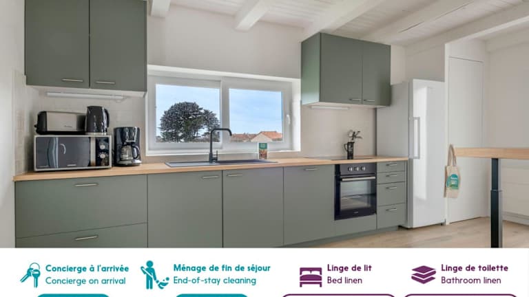 Die Unterkunft Maison pour 8 avec jacuzzi à 200m de la plage bietet mehr Platz für größere Gruppen mit 4 Schlafzimmern und einem Garten. Darüber hinaus ist WLAN in der gesamten Anlage kostenfrei verfügbar. Zu den Annehmlichkeiten gehört ein Whirlpool, der den Gästen zur Verfügung steht.