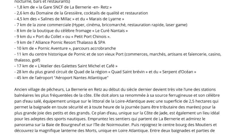 La Bernerie-en-Retz, nur 400 m von Strand Plage du Port Royal entfernt. In der Nähe befinden sich weitere Strände, wie Strand Plage de la Sennetière und Strand Plage des Carrés, die 400 m bzw. 700 m entfernt liegen. Der Bahnhof Pornic ist 11 km entfernt und das Château de Pornic 15 km.