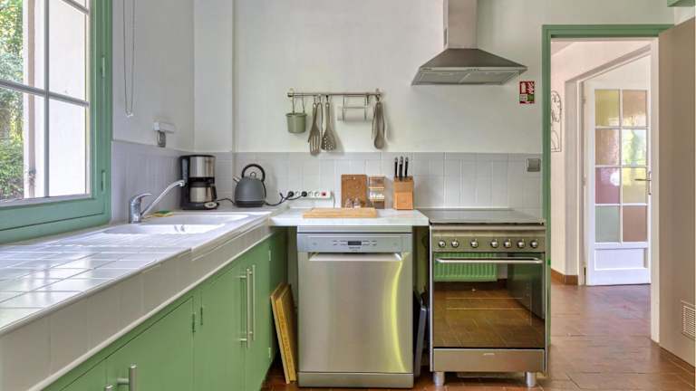 In der voll ausgestatteten Küche finden die Gäste einen Kühlschrank, einen Geschirrspüler, eine Waschmaschine, einen Ofen und eine Mikrowelle. Essmöglichkeiten sind vor Ort gegeben.