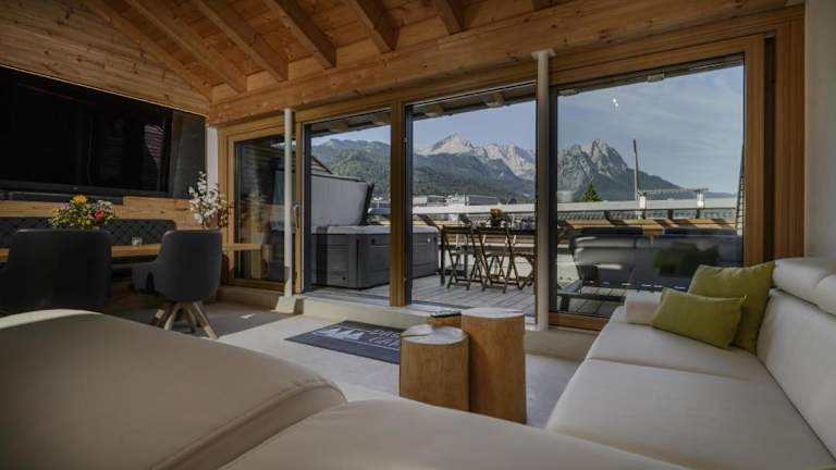 Die Unterkunft Maisonette-Apartment Das Garmisch mit Whirlpool verfügt über eine Terrasse und kostenlose Parkmöglichkeiten. Sie erlaubt keinen Feierlichkeiten, wie Junggesellenabschiede, und bietet einen kontaktlosen Check-in/Check-out.