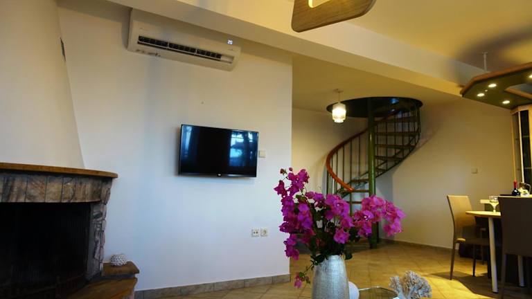 Das Maisonette Ilios verfügt über 2 gemütliche Schlafzimmer, die für einen erholsamen Schlaf sorgen. Die voll ausgestattete Küche bietet alle Annehmlichkeiten, um Ihre eigenen Mahlzeiten zuzubereiten. Der Flachbild-TV und der komfortable Sitzbereich laden zum Entspannen ein. Die 2 Badezimmer verfügen über eine Badewanne und bieten Komfort und Privatsphäre.