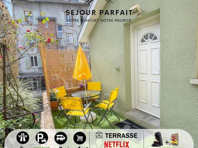 Das Maisonnette Le Faubourg - CENTRE VILLE, TERRASSE ET NETFLIX bietet ein komfortables und modernes Apartment mit einem Schlafzimmer und einem Wohnzimmer. Die voll ausgestattete Küche mit Kühlschrank und Kaffeemaschine ermöglicht es Ihnen, Ihre eigenen Mahlzeiten zuzubereiten. Das Apartment verfügt über ein Badezimmer mit Dusche und Haartrockner. Handtücher und Bettwäsche werden gestellt, um Ihren Aufenthalt so angenehm wie möglich zu gestalten.