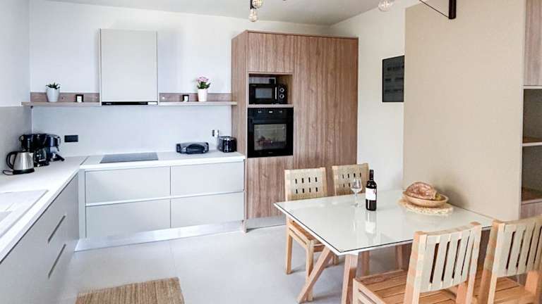 In der Maistros Villa haben Sie die Möglichkeit, Ihre eigenen Mahlzeiten zuzubereiten. Die voll ausgestattete Küche bietet Ihnen alle notwendigen Geräte und Utensilien. Darüber hinaus gibt es Grillmöglichkeiten, die Ihnen die Zubereitung von köstlichem Grillgut ermöglichen.