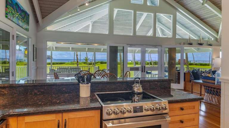Das Makana Nui Home in Hanalei auf Hawaii ist ein ideales Ferienhaus für Ihren nächsten Urlaub. Mit einer Terrasse und einem atemberaubenden Meerblick bietet es den perfekten Ort zum Entspannen. Die Unterkunft ist klimatisiert und verfügt über kostenfreies WLAN sowie Privatparkplätze. Das Ferienhaus ist mit 3 Schlafzimmern, einer gut ausgestatteten Küche und 3 Badezimmern ausgestattet. Handtücher und Bettwäsche werden gestellt, sodass Sie sich um nichts kümmern müssen. Der Strand Hanalei und der Waioli Beach Park sind nur wenige Gehminuten entfernt. Der Flughafen Lihue ist ebenfalls gut erreichbar.