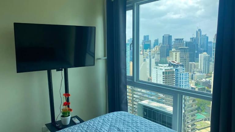 Makati Penthouse with Stunning City Skyline View bietet Übernachtungsmöglichkeiten in einer Ferienwohnung, die durch den eigenen Pool und kostenfreies WLAN hervorsticht. Die Unterkunft bietet eine Klimaanlage und eine ansprechende Aussicht auf die Skyline von Manila.