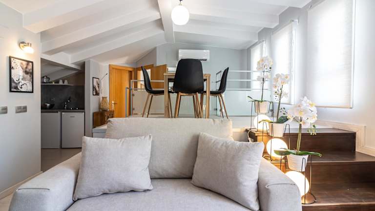 Die Apartments beinhalten einen Sitzbereich, eine voll ausgestattete Küche mit Essbereich, einen TV sowie ein eigenes Badezimmer mit Dusche und Haartrockner.