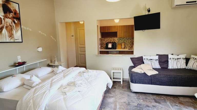 Das Hotel Malibu Summer Studios liegt direkt am Strand von Dassia und bietet somit einen unmittelbaren Zugang zum Meer. In der Umgebung finden Sie zahlreiche Restaurants, Bars und Einkaufsmöglichkeiten. Der Ort Dassia ist bekannt für seine malerische Lage und die schöne Natur. Der internationale Flughafen Korfu ist nur eine kurze Autofahrt entfernt und bietet eine bequeme Anreisemöglichkeit.